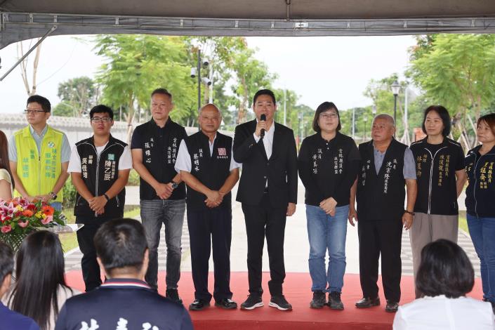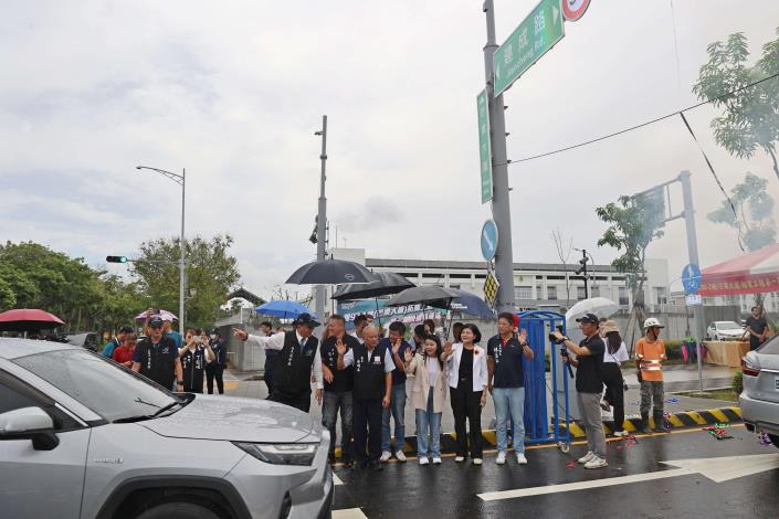 張麗善縣長、立法委員張嘉郡、黃凱議長、虎尾鎮長林嘉弘等一同迎接見證芒果大道第一階段通車