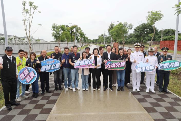 今日(9/24)張麗善縣長率工程團隊,偕同立法院張嘉郡委員、雲林縣議會黃凱議長、張維心議員、黃美瑤議員、蔡明水議員、虎尾鎮林嘉弘鎮長、鎮民代表會陳明聖主席、在地代表、里長,及國防部軍備局工營中心中區營業處曾煥祐處長、陸軍第十軍團指揮部52工兵群陳威中指揮官、海軍戰鬥系統工廠陳昌蔚廠長、鍾勳處長等一同見證芒果大道第一階段通車儀式。