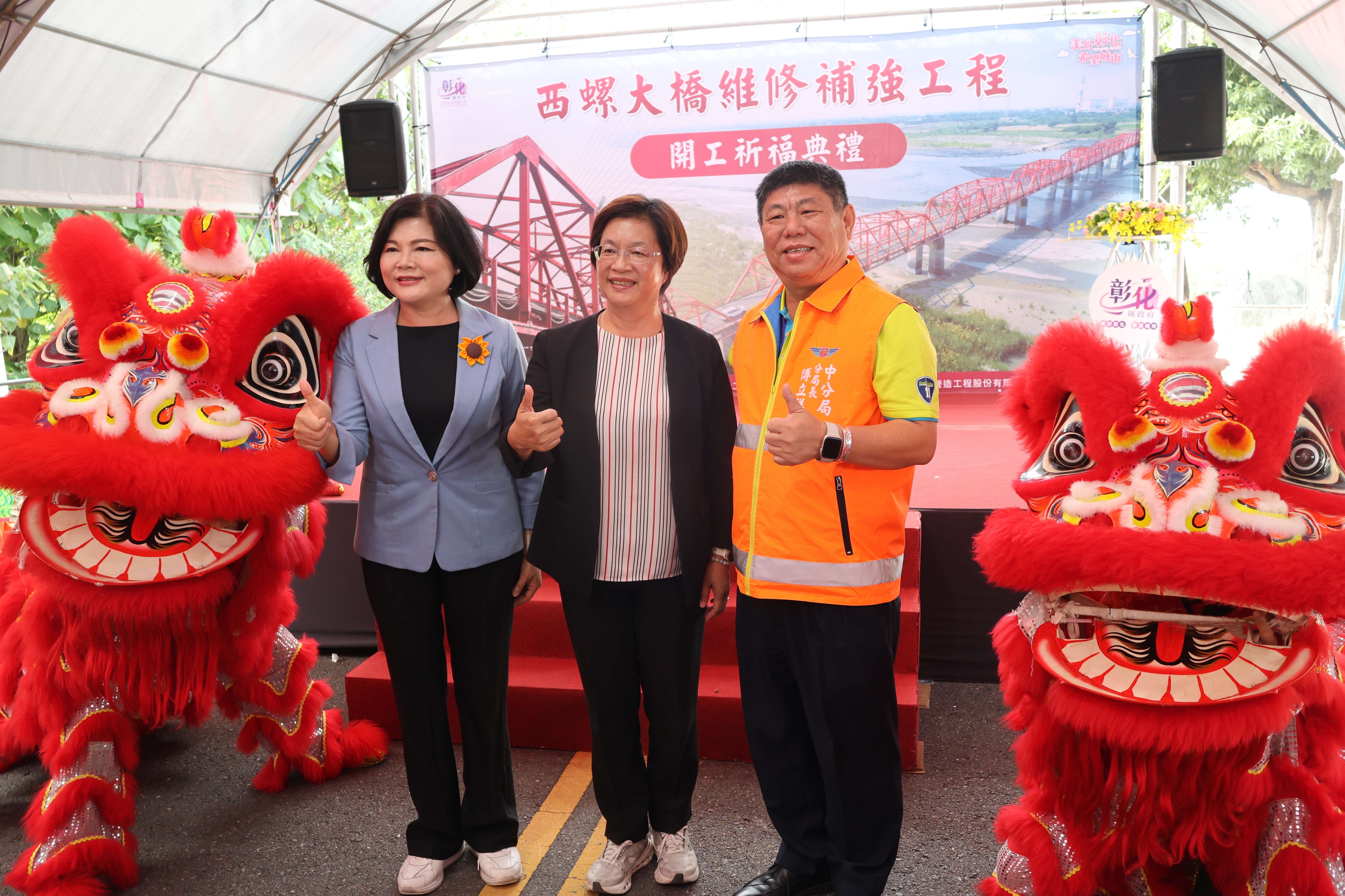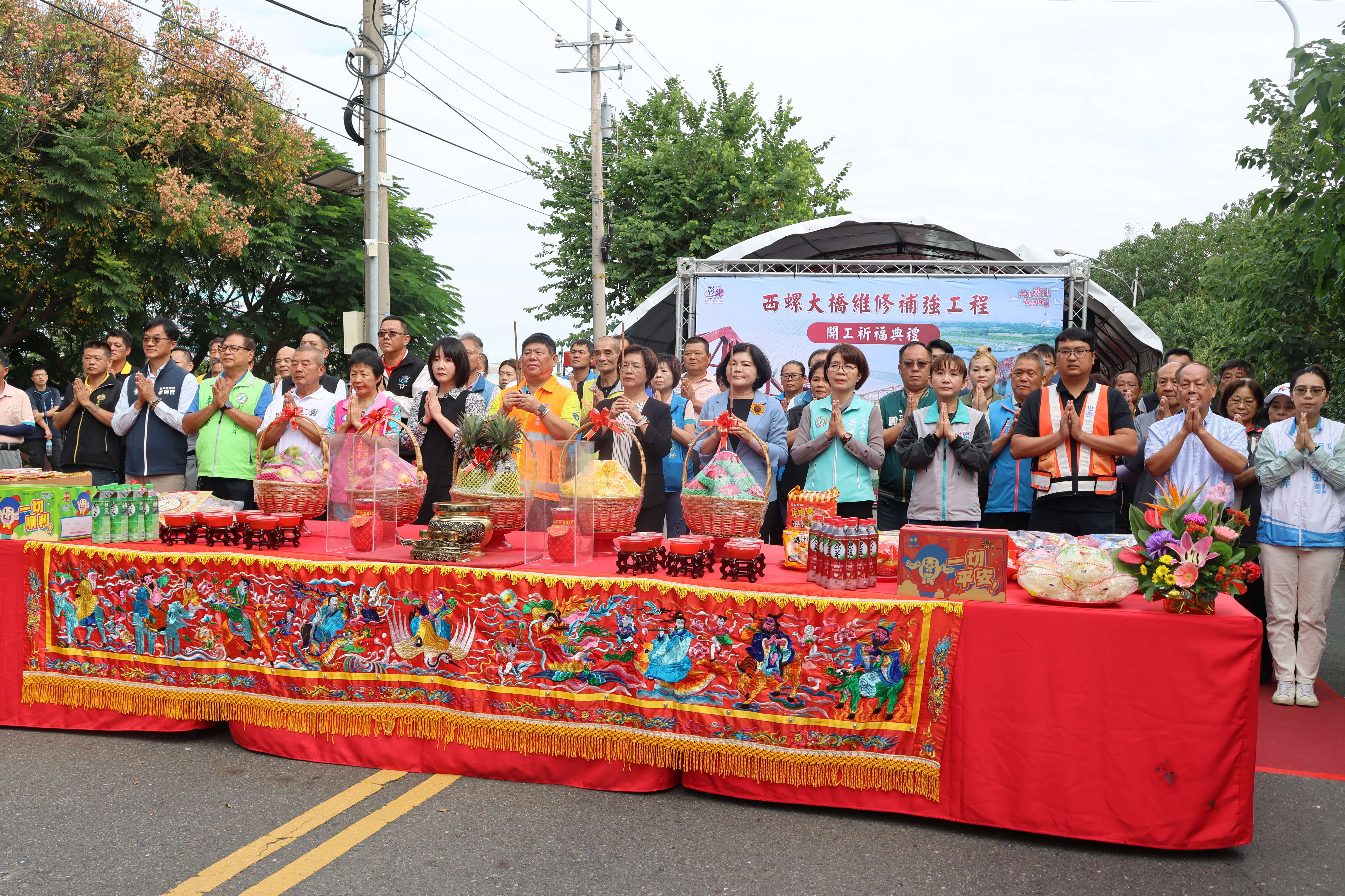 為祈求「西螺大橋維修補強工程」施工安全與圓滿順利,持續提升中彰雲地區的交通韌性並保存珍貴歷史資產,今(27)日上午於西螺大橋彰化端舉行盛大的開工祈福典禮,雲林縣長張麗善、彰化縣長王惠美、交通部公路局中區分局長傅立祥、多位民意代表及地方仕紳共同見證開工時刻,象徵中央與地方跨縣市攜手合作,為這座跨越濁水溪的重要橋梁邁向下一個嶄新里程碑。